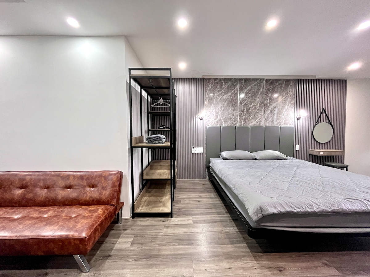 ✨ Studio tầng 3 tại COCO Villa 6: * Diện tích 45m², không gian riêng tư và đầy đủ tiện nghi * 1 Giường King 2mx2m2 rộng rãi có thể dành cho gia đình 2 người lớn 1 trẻ em hoặc cặp đôi * Bếp nhỏ tiện dụng và phòng tắm khép kín * Ban công riêng với tầm nhìn thành phố đẹp mắt Hãy để buổi hẹn hò của bạn mang đậm dấu ấn cá nhân – bởi quyết định luôn thuộc về bạn.
