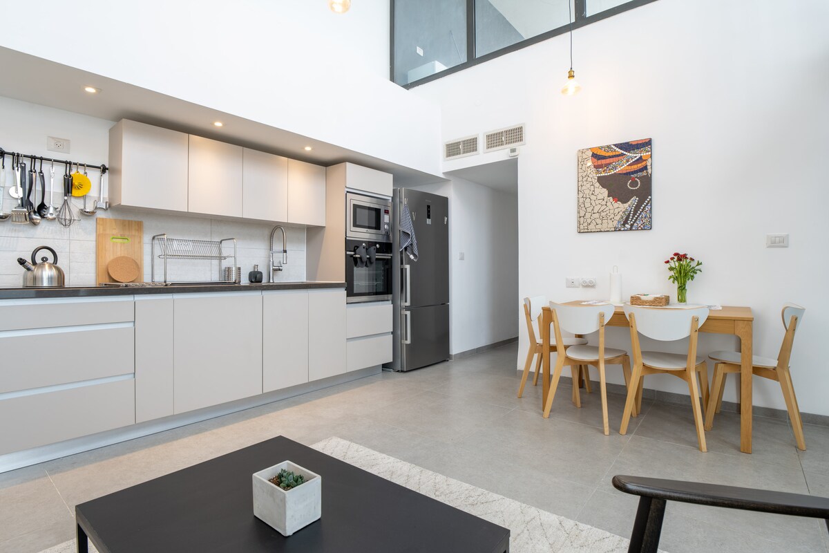 [TAX-FREE (17%) FOR TOURISTS – DETAILS IN HOUSE RULES] NY Loft Style Meets Mediterranean Views 🌊 Discover Manhattan vibes in the heart of Haifa. This fully renovated, designer apartment on Hillel St offers a unique urban escape with a stunning panoramic balcony. ✨ NY-Inspired Design: High-end, modern interiors ✨ Panoramic Balcony: Stunning sea & city views ✨ Top Location: Steps from Masada St., 10 min to Bahai Gardens ✨ Fiber WiFi: Ultra-fast 574 Mbps ✨ Access: 47 stairs