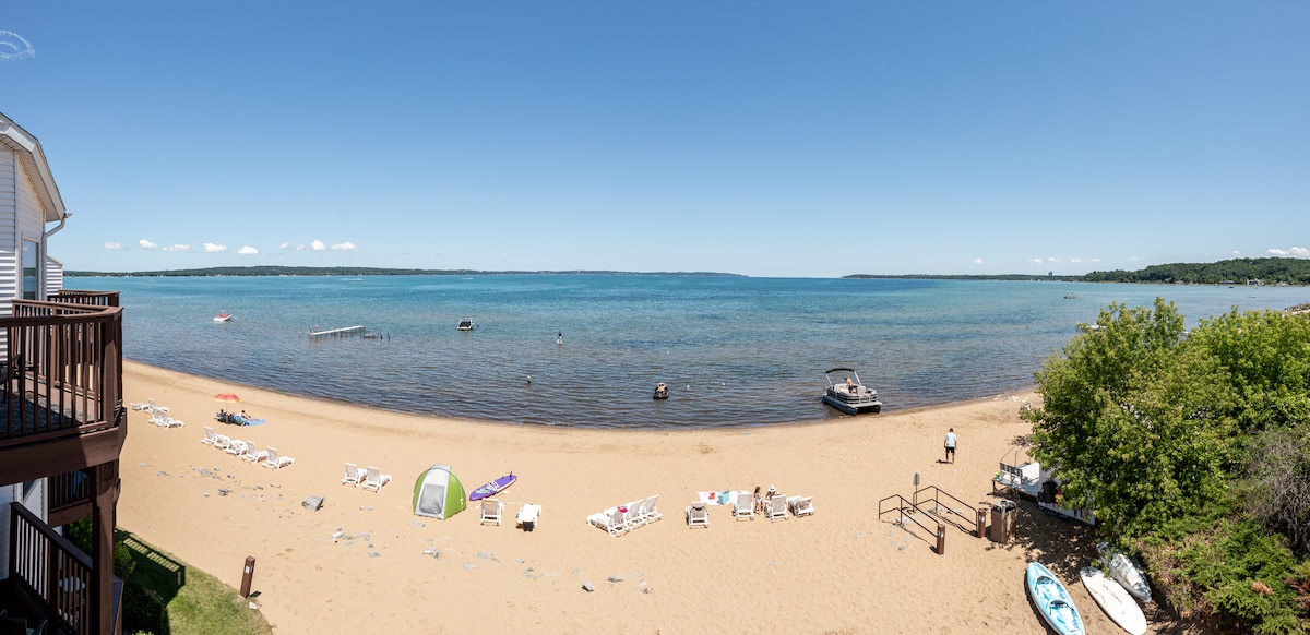 Fai in modo che questo appartamento ristrutturato sul lungomare sia la tua casa lontano da casa mentre visiti la zona di Traverse City! Questo appartamento si trova sulla baia di East Bay e offre una vista incontrastata sull'acqua. In estate, rilassati a bordo piscina tra un'esplorazione e l'altra dei punti di riferimento di Traverse City. Questo appartamento offre una camera da letto con letto king-size e un divano letto queen-size aggiuntivo nel soggiorno. La cucina completa è perfetta per preparare qualsiasi pasto e gustarlo sul balcone con vista sull'acqua. Lunga giornata di escursioni? Immergiti nella vasca idromassaggio del complesso.