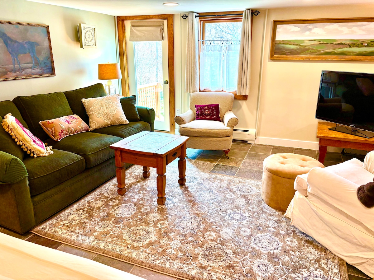 Kick back and relax in this calm, stylish, quiet space w easy parking. Walk/bike to the beach. Enjoy your private space with dining area, sofa, queen bed and private bath. The space is over 600 sq ft with plenty of sunshine -- and room to relax on the couch, rest in bed or dine/work at the table. Visit the shops & cafes of Portsmouth. Clean, bright, and private space. Two bikes & beach chairs. We are a little more than a mile from the beach and an easy drive to NH/Maine sites.