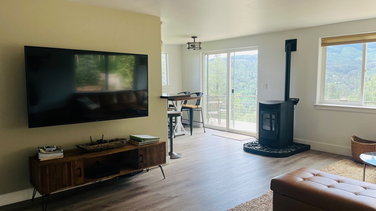 Nestled in a peaceful neighborhood just two miles from Ouray, Yeti Summit offers a serene escape behind the main residence. This charming retreat features a luxury king bed, a private hot tub, and a scenic deck perfect for listening to the gentle flow of Corbett Creek. Whether you are exploring the nearby Dallas Trailhead or visiting the Ouray Hot Springs Pool, our home provides the perfect base. Please note that county ordinances limit on-site trailer parking to one vehicle.