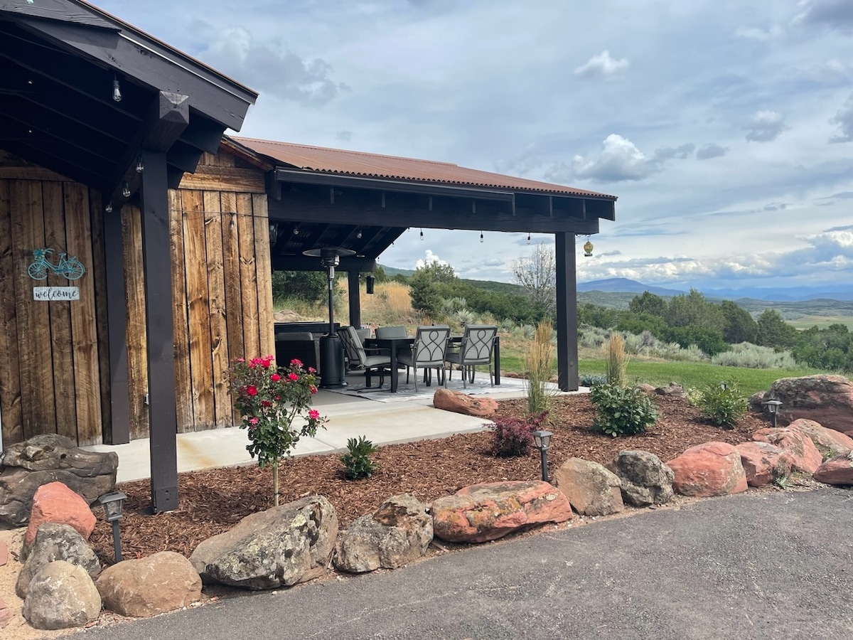 The Villa Costalotta (we are being facetious) is a stand alone building separated from our cabin by a paved alleyway. We live out in the country, just 3 miles from Eagle, with no near neighbors so mostly what you hear is the creek behind the building and the nearest neighbor’s rooster crowing. We have installed Starlink for internet service with over 100Mbps download speed.