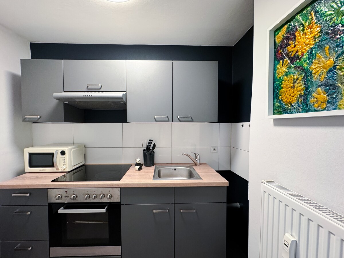 Luminoso monolocale arredato di alta qualità nel centro di Langenhagen. Con letto matrimoniale e divano letto nella zona giorno. Angolo cottura con 4 fornelli e forno a microonde con funzione di cottura. Bagno con doccia a pioggia. Piccolo balcone. L'appartamento si trova al 2° piano. Per ulteriori domande, non esitare a contattarmi: sono sempre a tua disposizione.