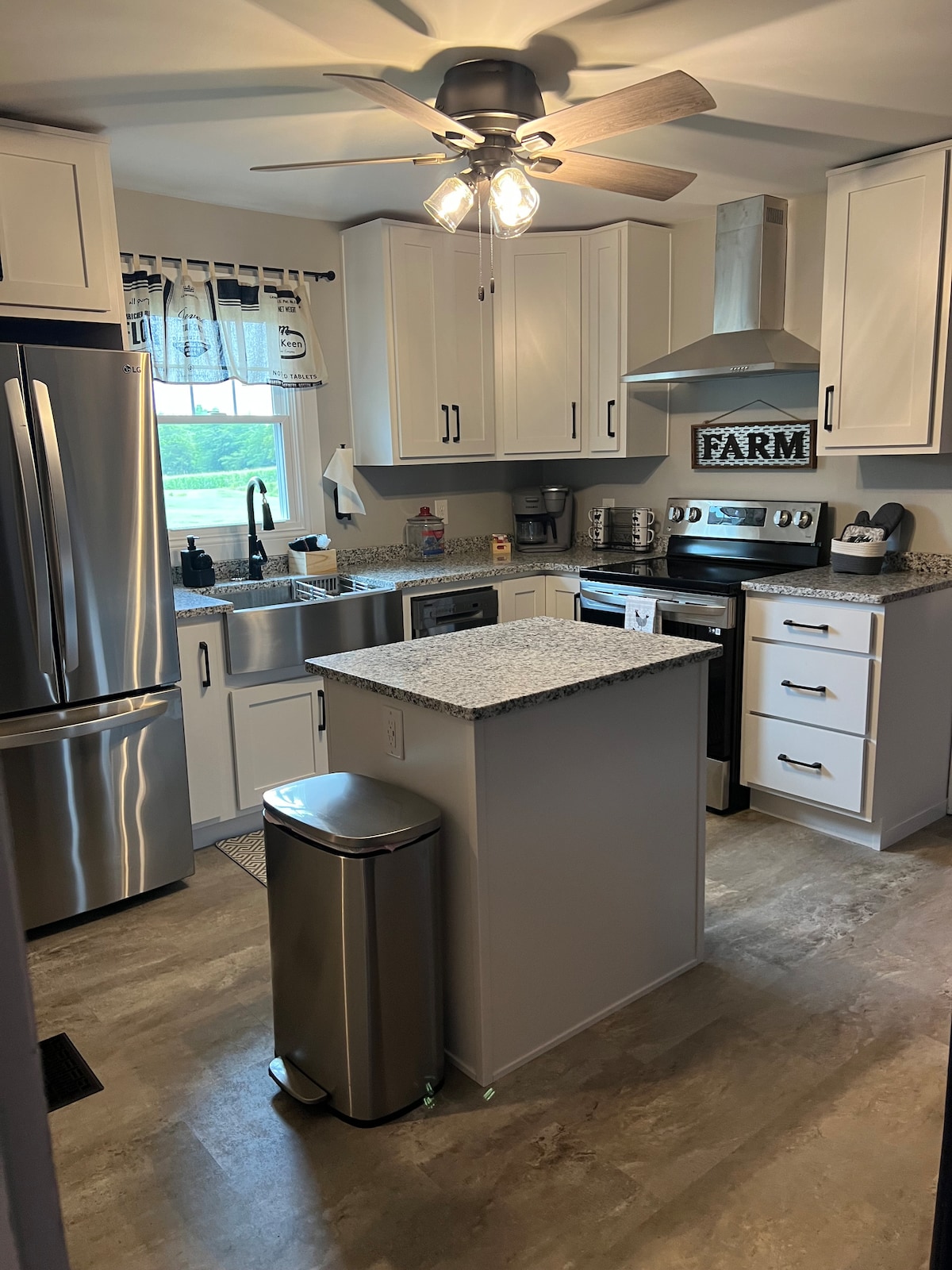 Rilassati con tutta la famiglia in questo alloggio tranquillo. Situata a soli 3 km dalla città, questa fattoria del 1933 di quarta generazione è stata recentemente ristrutturata sia all'interno che all'esterno. Goditi il relax nel portico anteriore chiuso o nell'ampio terrazzo con vista sulla fattoria di 73 ettari. Gli ospiti possono godersi una piacevole passeggiata intorno alla fattoria, lanciare una lenza nello stagno rifornito e trascorrere del tempo intorno al fuoco a chiacchierare e arrostire smore. Chiedi al tuo host informazioni su eventi di gruppo e gite in fieno intorno alla fattoria.
