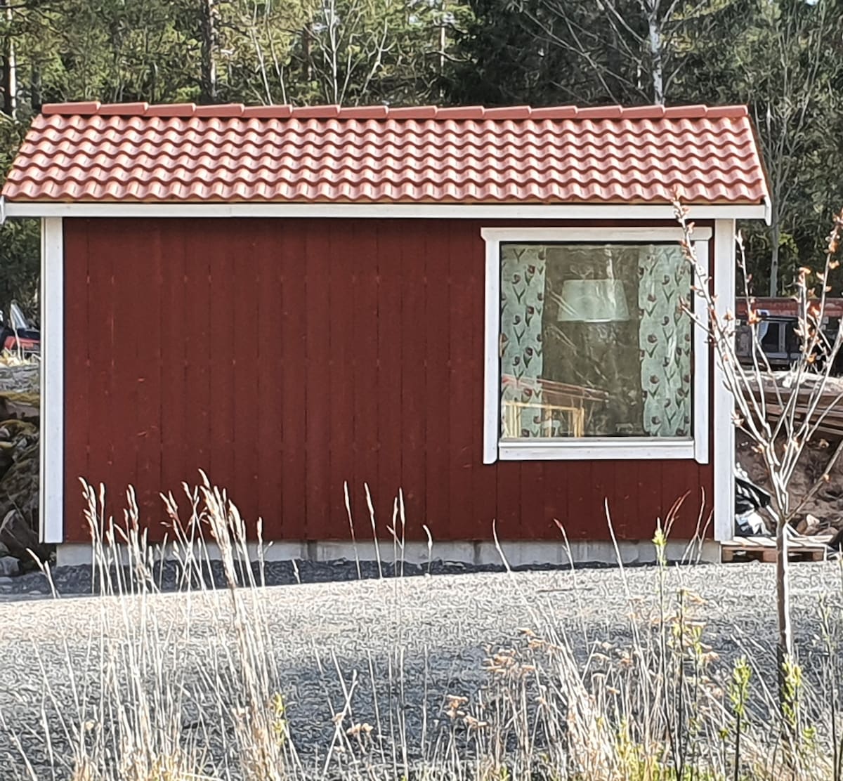 Piccola pensione che è un vecchio rifugio. Situata in una piccola fattoria dove anche la nostra casa si trova sullo stesso terreno. Cucina completamente attrezzata. WC e doccia. 1 piccola camera da letto con letto da 90 cm al piano inferiore. Camera da letto combinata (2 letti da 80 cm) e soggiorno al piano superiore. Circa 180-200 cm di altezza del soffitto al piano inferiore in cucina. 5 minuti a piedi da un accogliente stabilimento balneare sul lago. Ambiente rurale con cavalli nelle vicinanze. A 300 m dal sentiero Roslagsleden. A 5 km dal mare. A 9 km da Älmsta con Ica e ristoranti. A 25 km da Norrtälje.