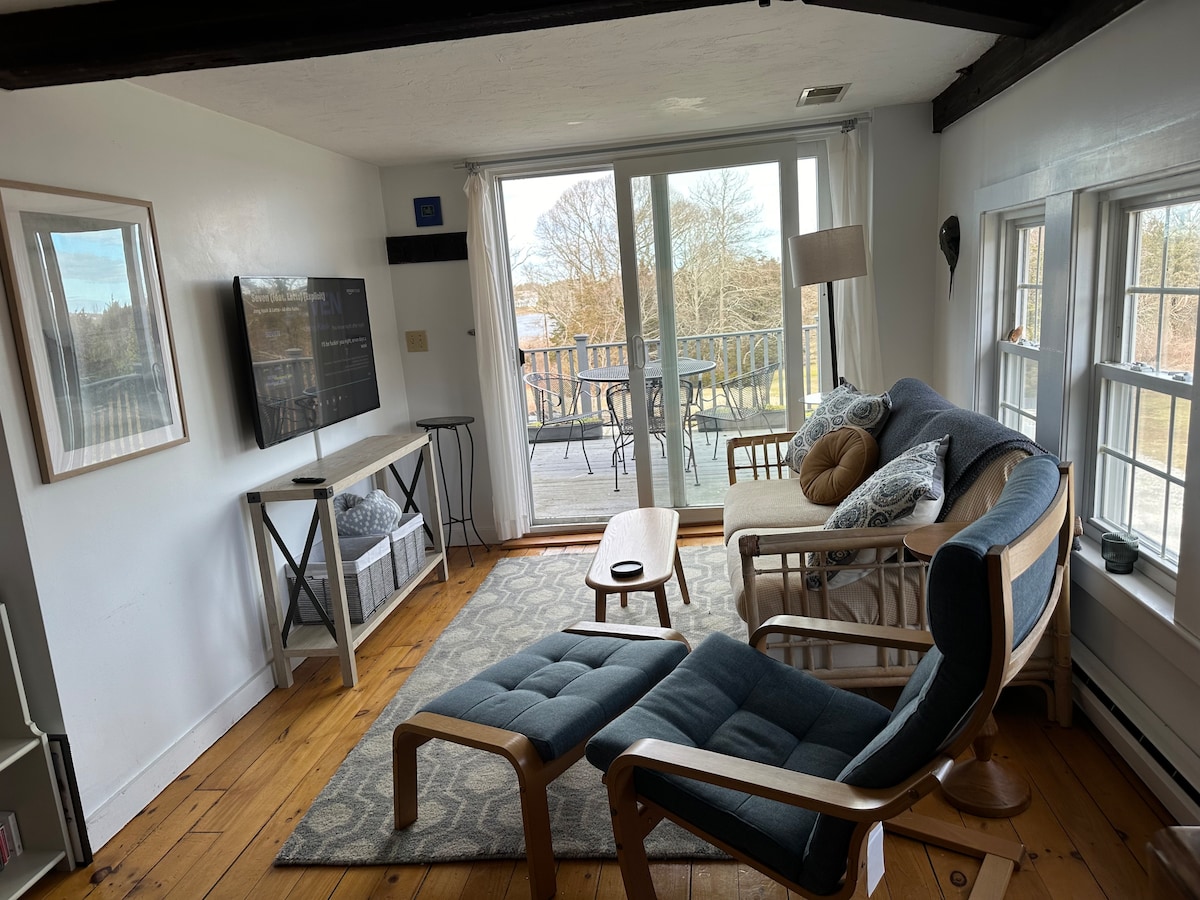 Great in-town location. Bright, Clean, Safe, Private and Spacious. Hidden away Above the shops, behind the Main Post Office. Great for Romantic Getaway, WEDDING GUESTS, business trips, overflow guests or just a quick get-away break. Comfortably furnished, thoughtfully outfitted. Well equipped Kitchen, Quality linens, duvet etc. Walk to everything. Private parking. **Please Note: Additional MA lodging tax of 12.45% will apply to all short term rentals**