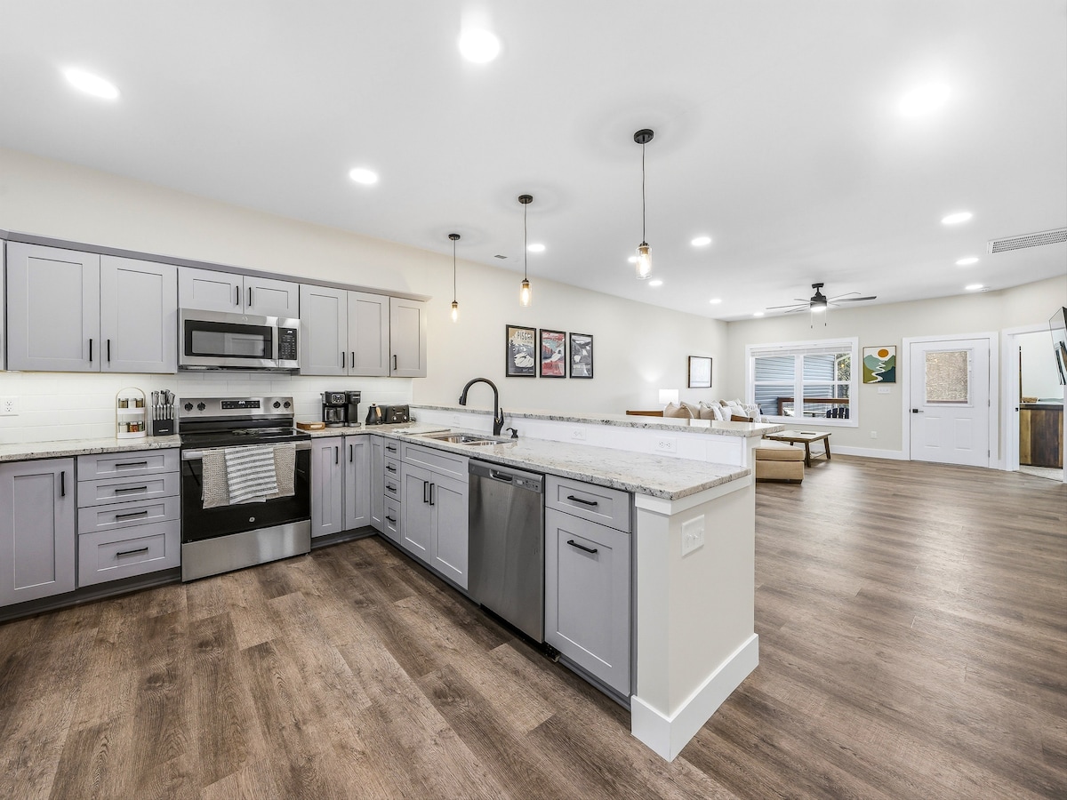 This downtown Brevard condo features on-site parking, comfortable furniture and amenities, and is just minutes from Main Street. In fact, keep your car parked and enjoy a short walk or bike to the fabulous restaurants, shops, art galleries, movie theater, arcade, and all that downtown has to offer!