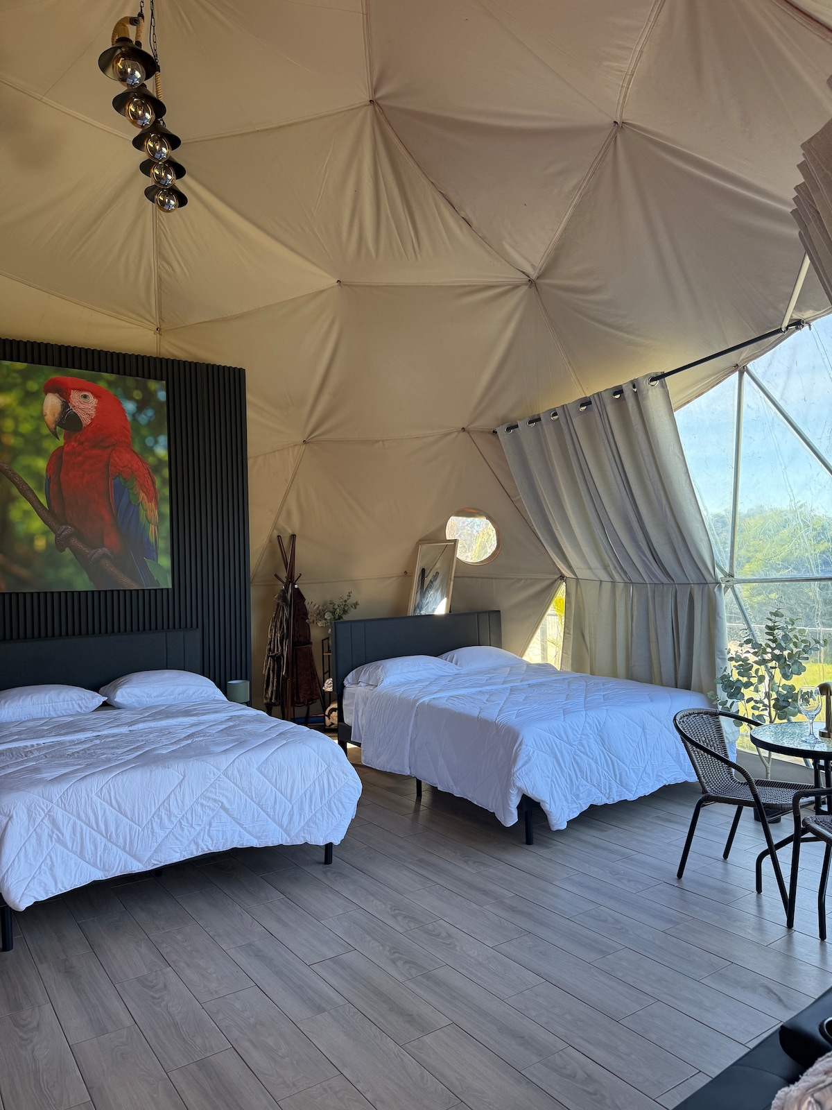 City Dome Farm House is more than just a lodging, it's a whole experience. You'll have the opportunity to be connected with nature even within the heart of the city. It's located just 15 minutes away from Juan Santamaria Airport, so you'll have easy access to restaurants, shops, and supermarkets. You will have inside the dome agroecological products made on the farm. Domo Farm House is a space for creativity and connection. We also offer the possibility of providing transportation services.