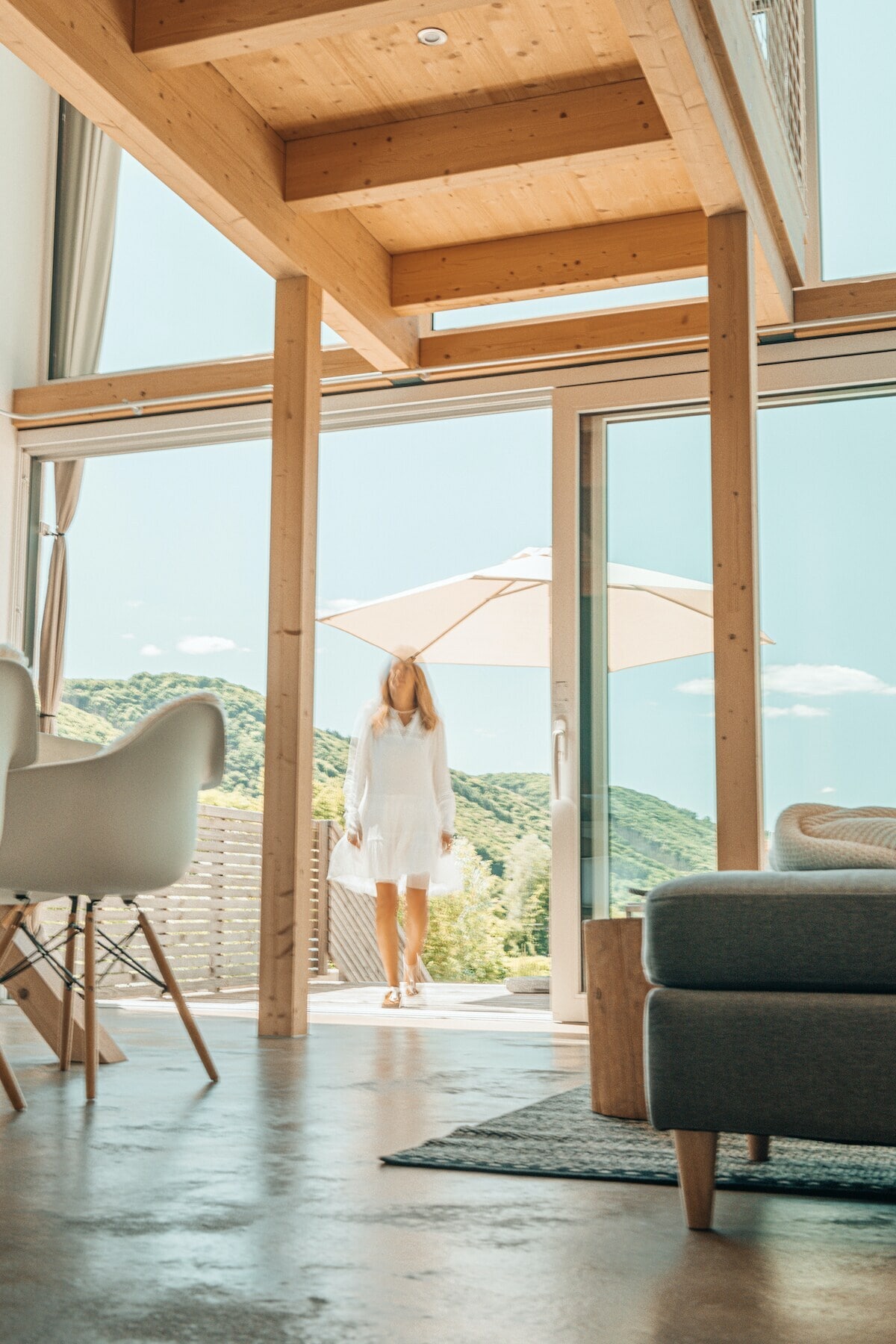 Tutto è iniziato con un sogno. Chalet nella natura al Parco Nazionale. Questo è il nome delle nostre nuove case vacanza ad Allenbach. Le case in legno naturale sono arredate in modo identico all'interno. Uno chalet si chiama Franz, l'altro Marie-Luise. Come i nostri due figli. L'odore del legno porta subito il relax desiderato. Per tutta la durata del soggiorno avrete a disposizione un'auto elettrica gratuita. Pagate solo l'elettricità per la ricarica. L'auto elettrica è una Kona del marchio Hyundai.