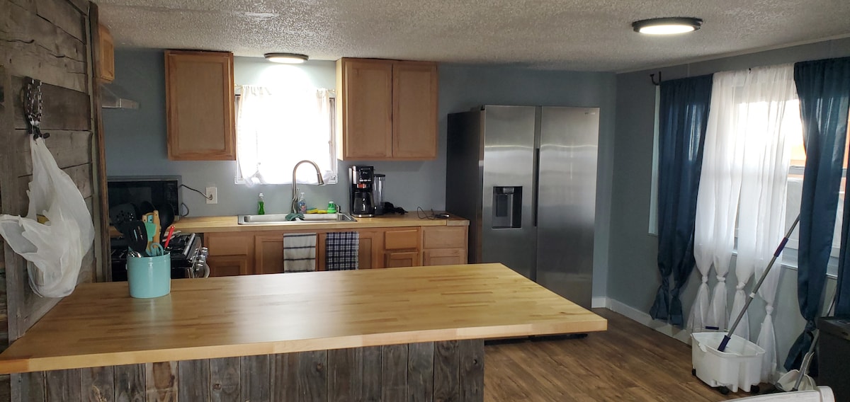 Lusso completo. Bellezza naturale mozzafiato. Casita di 1.475 m ², con vista sul lago Abiquiu, sulle scogliere rosse che circondano il Ghost Ranch e sulla montagna di 3.000 metri di altitudine Pedernal, tutto ciò che la Georgia O'Keefe ha reso famosa nei suoi dipinti. La cucina dispone di elettrodomestici in acciaio inossidabile e di una stufa a gas Bosch con forti griglie. Appena fuori, sul portale, troverai un barbecue in acciaio inossidabile. Il Master BR ha una doccia in ardesia e una vasca da bagno profonda. Entrambe le camere da letto hanno letti queen-size e un materasso gonfiabile di dimensioni standard.