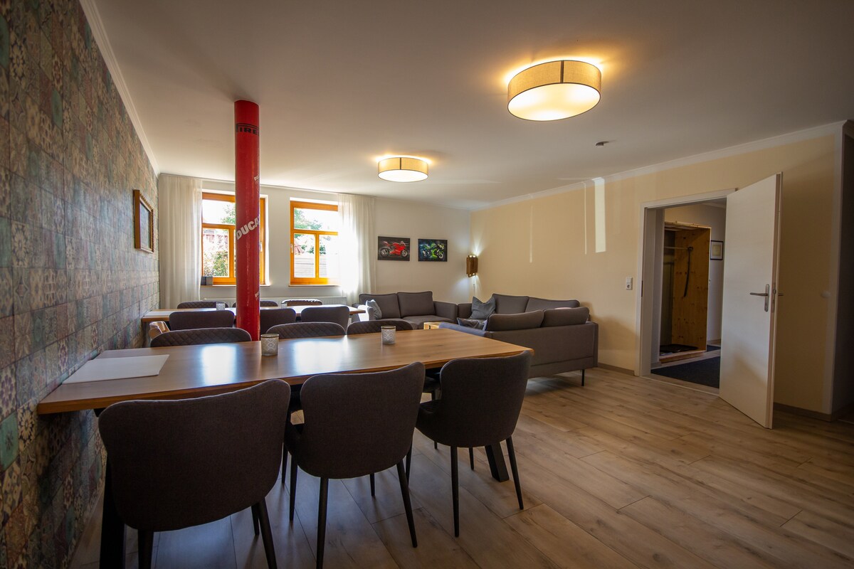 • Immersione • Godere • Sii Rilassarsi, ricaricare le batterie su un vecchio mulino ad acqua, in accoglienti camere e appartamenti naturali. Come rifugio, per fermarsi dopo un'escursione attraverso l'Harz o anche per curiosare, stare in comune, scambiare, rilassarsi Fuori dalla vita quotidiana • entra nell'essere Questo appartamento per gli ospiti si trova di fronte alla guest house al piano superiore con accesso indipendente e terrazza con vista verso est Benvenuti al maso MinsMühle