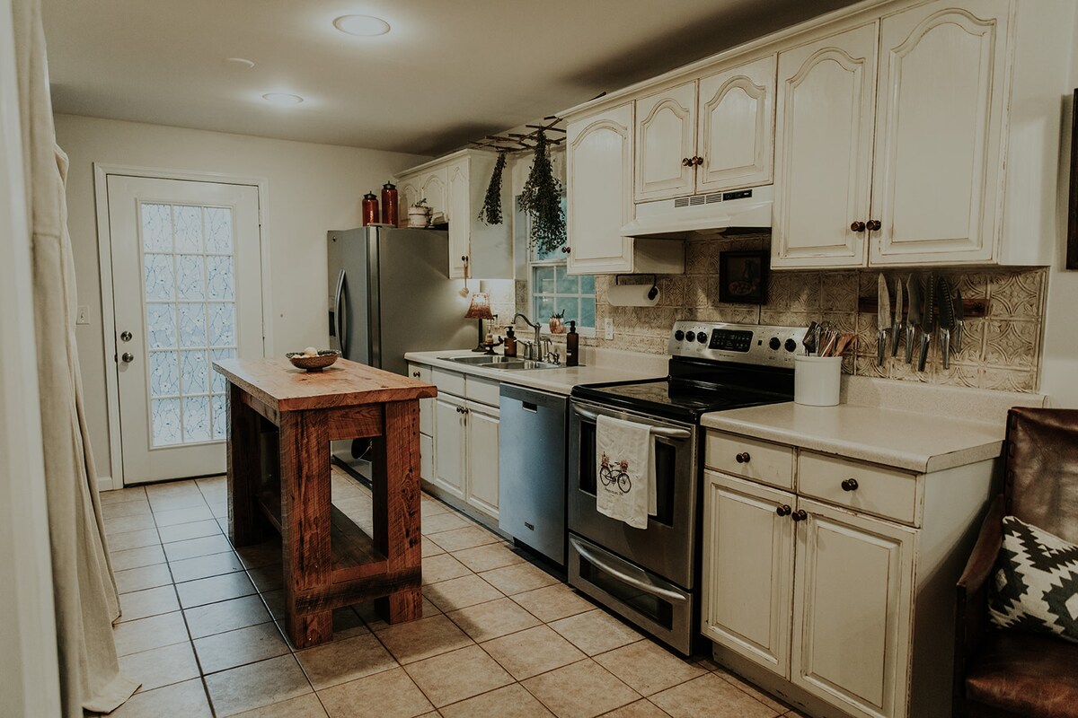 Rilassati con la famiglia in questo cottage completamente ristrutturato, costruito negli anni '40. Dotato di due camere da letto con molte zone comode e rilassanti. Goditi il cortile con vasca idromassaggio (gonfiabile) e illuminazione notturna. Griglia sulla carbonella o rilassati intorno al braciere. A pochi passi dal meleto, dove potrai soddisfare le tue papille gustative con una mela fresca e croccante, un frullato di sidro di mele o una torta di mele fritte. Anche se rurale, questa casa si trova a soli 6 km dall'Interstate 40! A circa un'ora da Asheville e Charlotte.