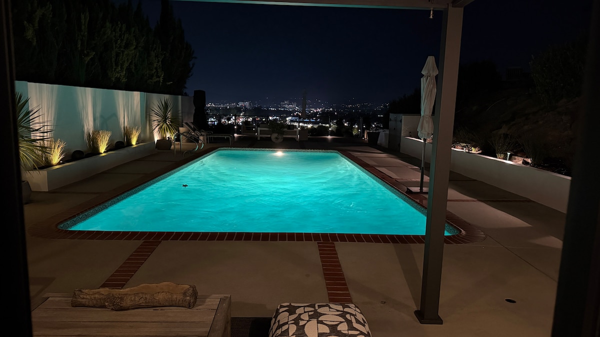 Rifugio sereno, immerso nelle colline di Hollywood; zen spirituale, oasi privata. Sensibile e alla moda, con una moderna influenza asiatica/balinese, perfetta per l'intrattenimento al coperto/all'aperto. Ogni bagno offre pace e relax. Ampia camera da letto matrimoniale con caminetto e bagno interno, vasca idromassaggio e doccia a pioggia. Rilassati nella spa riscaldata all'aperto. Questo alloggio evoca una risposta emotiva. Inoltre, accettiamo animali domestici. La nostra casa può ospitare solo fino a 8 persone, non sono ammessi ospiti o visitatori aggiuntivi.