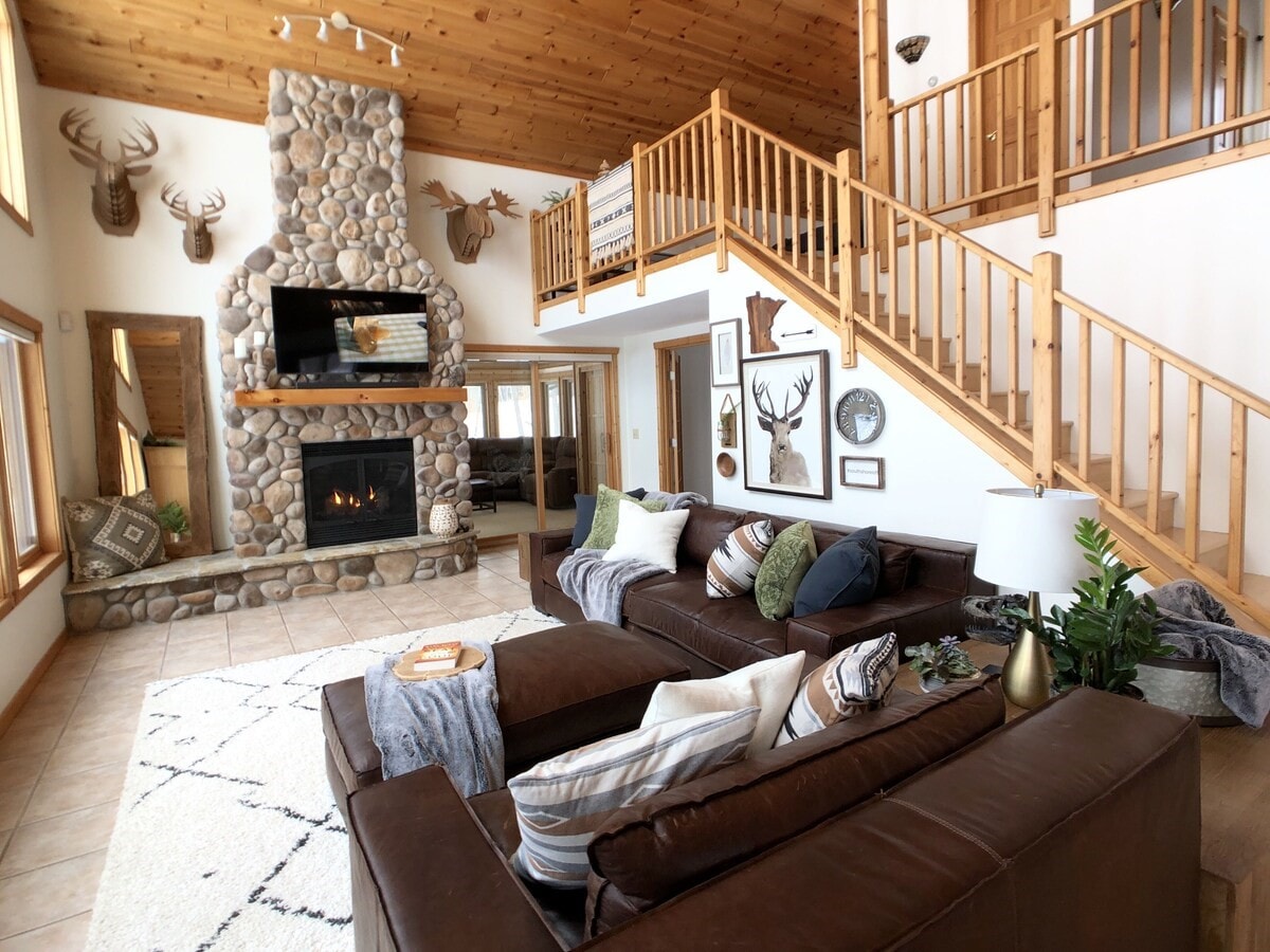 Un rifugio confortevole e accogliente nelle Northwoods del Minnesota ti aspetta per un soggiorno tranquillo, dove potrai rilassarti e goderti gli spazi interni ed esterni progettati. A 800 metri di distanza troverai una cittadina rurale con servizi semplici, mentre le città più grandi, con le loro attività all'aperto, distano poco più di 30 km. Il nostro ponte di 24 metri che conduce a un'isola privata su uno stagno è il luogo perfetto per leggere un libro o giocare a carte con gli amici. Il nostro esclusivo bar seminterrato personalizzato e gli spazi intimi circostanti ti faranno sentire a tuo agio.