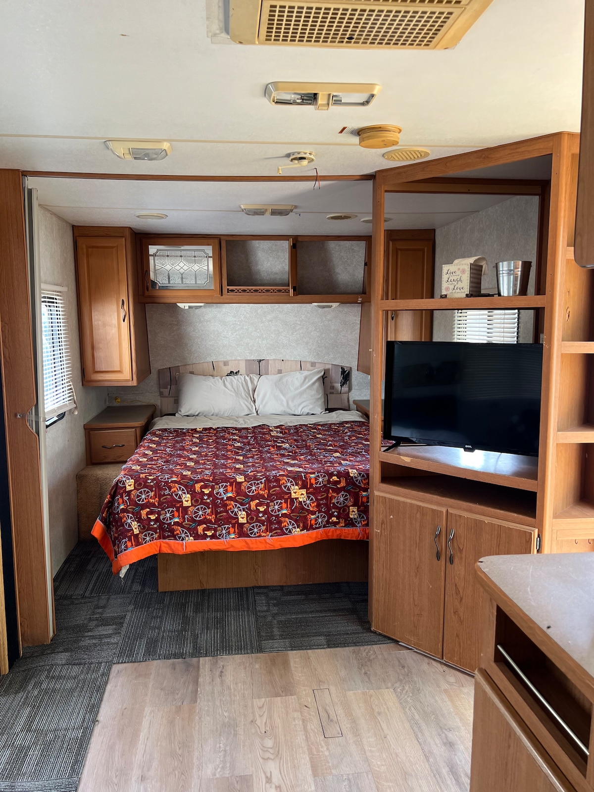 Vieni a soggiornare nella Hill Country... Un grande rimorchio da viaggio di 10 metri incastonato sotto le querce. Camera da letto privata con letto matrimoniale. Spaziosa cucina e soggiorno con una grande scrivania nel caso in cui tu abbia bisogno di lavorare. Ti viene fornita una chiave per il rimorchio da viaggio e il telecomando del cancello in modo che tu possa andare e venire a tuo piacimento. Sulla scrivania c'è un foglio di istruzioni che dovrebbe rispondere a qualsiasi domanda tu possa avere. A presto!