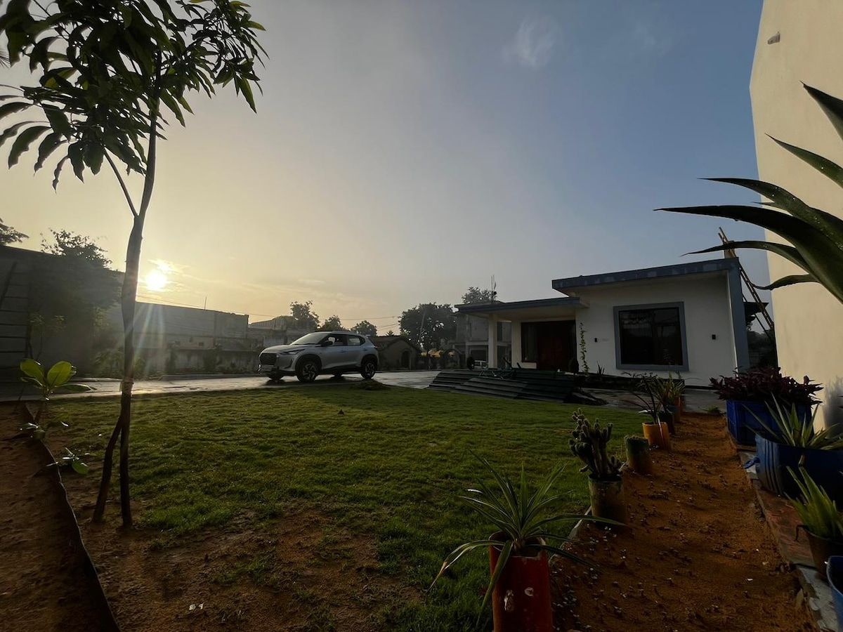 Unwind in the lap of nature at our cozy farmhouse, complete with a private jacuzzi for ultimate relaxation and much more. Surrounded by greenery, fresh air, and endless peace, this retreat blends rustic charm with modern comfort. Wake up to the sound of birds, take a walk through the fields, or sip your morning tea on the veranda as the sun rises. Spend your days lounging by the pool, soaking in the jacuzzi, or simply enjoying the cool breezes and starry nights far from the city.