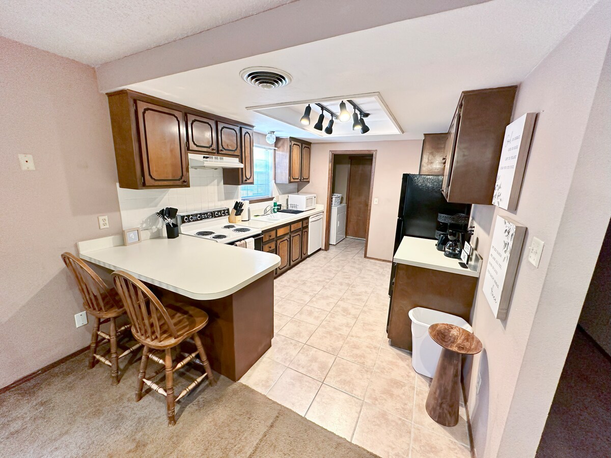 Sentiti a casa in questo spazio accogliente, spazioso e sereno. Situato a nord di Hobbs, vicino a ristoranti e negozi. Questa casa aggiornata con 4 letti e 2 bagni è dotata di un'ampia zona giorno aperta sulla cucina e sulla zona pranzo con WiFi veloce per lo streaming e la navigazione. 1 grande camera da letto principale e bagno con TV montata. 2 camere da letto perfette per un riposo appagante. La quarta camera da letto con grande spazio che include una scrivania e un divano a cuscino. Uso completo della casa, inclusa lavatrice e asciugatrice. Parcheggio per 2+ veicoli.
