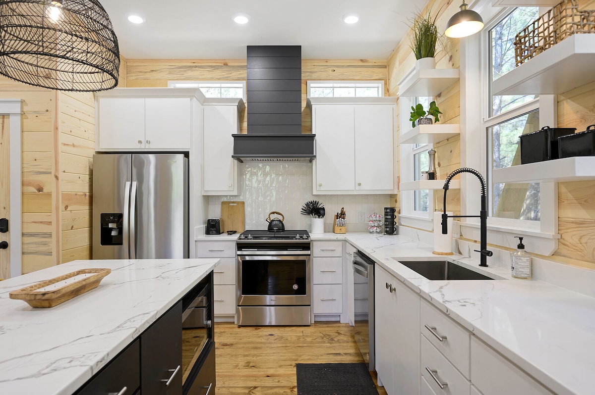L'Onyx è un moderno chalet di lusso unico nel suo genere a Broken Bow. Circondato da imponenti pini, questo splendido chalet di 102 metri quadrati con 1 letto, 1 bagno e vasca idromassaggio è situato in una posizione ideale, su un terreno di 1 acro tranquillo e silenzioso. Situato a pochi minuti dai ristoranti e dal parco statale, è la destinazione romantica per eccellenza per le coppie. *I proprietari di veicoli elettrici dovranno portare con sé il proprio caricabatterie mobile. Forniamo una presa di livello 2 per la ricarica.* *Il contratto di locazione verrà inviato via email agli ospiti per il completamento al momento della prenotazione.*