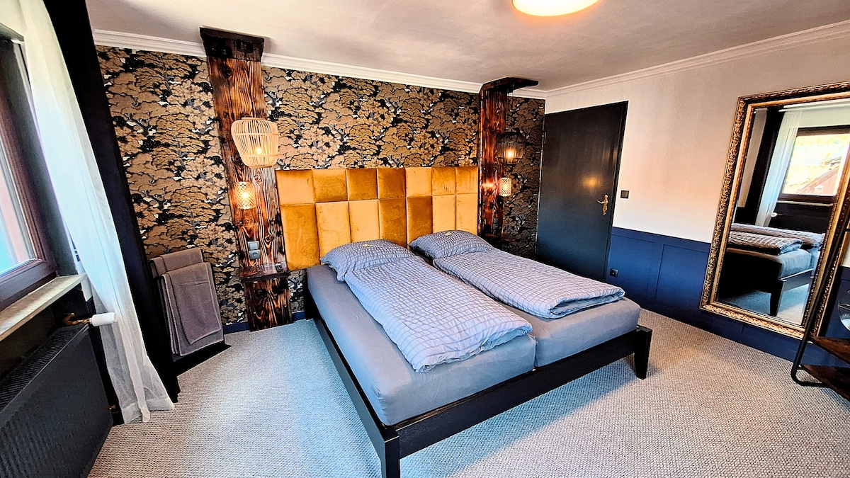 L'EIFEL QUARTIER anno 1846 fa parte di un insieme di diversi edifici storici in pietra, che sono stati restaurati con cura e offrono agli ospiti più esigenti una grande esperienza naturale nel cuore dell'Eifel, senza rinunciare al lusso rilassato. L'EIFEL QUARTIER è una sistemazione molto particolare e originale con una moderna stufa a pellet, si sviluppa su due piani e dispone di una stazione di ricarica elettrica. Qui la vita pura è stata trasferita nella modernità.