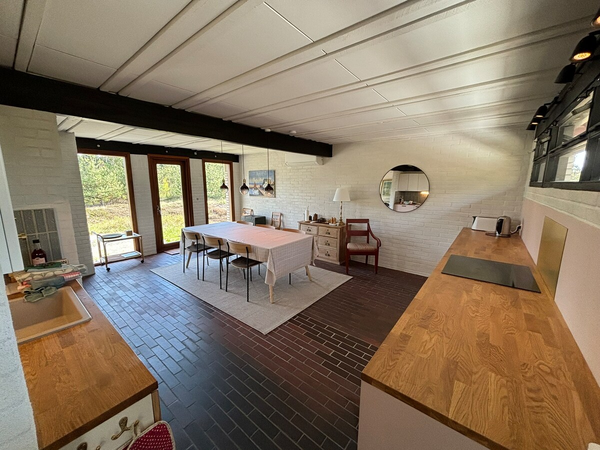 A soli 400 m dalla spiaggia più bella della Danimarca, troverete questa affascinante casa estiva con una nuova dependance e spazio per 10 persone. Il cuore della casa è l'accogliente cucina, il punto di ritrovo naturale dopo una giornata in spiaggia. Con 120 mq di terrazza, puoi sempre trovare un posto al sole o all'ombra e goderti le cene al barbecue. Odsherred offre una combinazione unica di natura e opportunità ricreative, nonché attività per il tempo libero come tennis, paddle o golf. Benvenuti a Gudmindrup Strand
