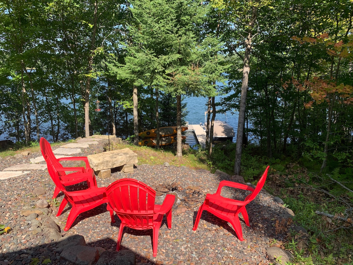 ●Alcune nuove aggiunte recenti ● *lussuosa vasca idromassaggio per sorgenti termali * ~~~~~~3 Riscaldatori da patio ~~~~~ Cucina all'aperto ◇completa◇ *Due forni per pizza 9 slitte da neve assortite Cabina arredata con tavoli da gioco, un bar, un bar per la colazione, una cucina con tutti i servizi, 5 televisori (tra cui un grande schermo da 75"). *C'è un grande ponte * Padiglione coperto * Braciere a legna * Braciere a gas * due stufe per il patio. Tanta legna da ardere e gas LP inclusi. Goditi l'esterno anche quando fa un po' freddo. Accesso al fiume Chippewa...