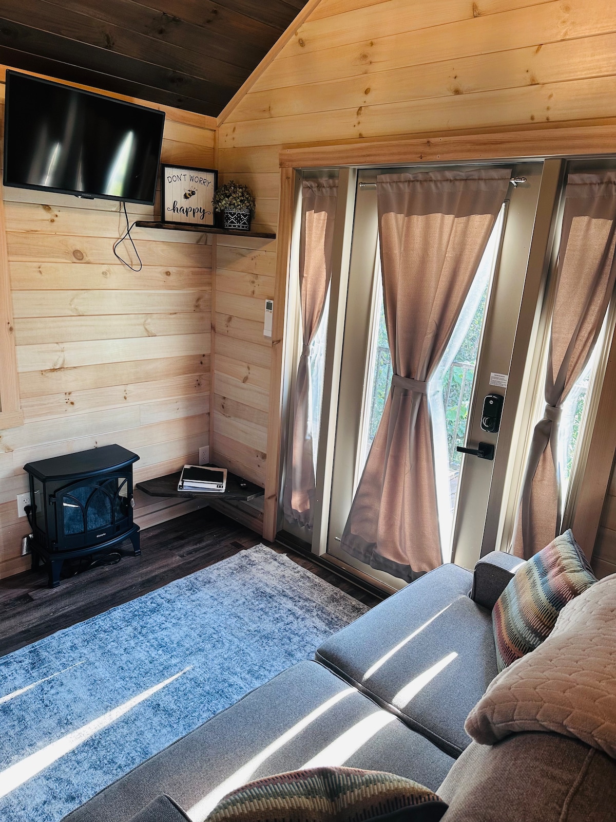 Questo chalet di 39 metri quadrati nella Amish Country dispone di un letto king-size, cucina completa, soggiorno con camino a gas, tavolo da pranzo e molto altro. Il bagno completo include una vasca idromassaggio in pietra per due persone e una cabina doccia in piastrelle. Mobili rustici realizzati dagli Amish, griglia a carbone e portico anteriore con sedie a dondolo completano questo chalet. Perfetto per due ospiti! Fuggi dal trambusto della tua routine e goditi invece un soggiorno rilassante nella contea degli Amish!