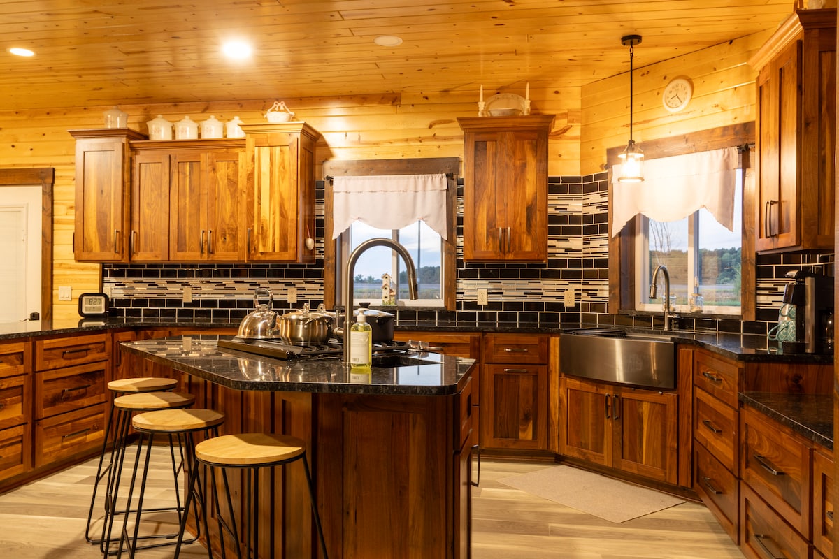 Questa casa costruita per le famiglie ti ricaricherà. Le alte finestre offrono una vista privilegiata sulla fauna selvatica che si avvicina a questa casa immersa nella Manistee National Forest. Rilassati davanti alla finestra a golfo e ammira il prato fiorito che conduce allo stagno in estate. Rannicchiati con una tazza di tè e senti il calore delle pareti in pietra durante una nevicata invernale. Ascolta i suoni della notte sulla veranda incantata. Respira l'aria autunnale mentre percorri il sentiero preparato nei boschi.