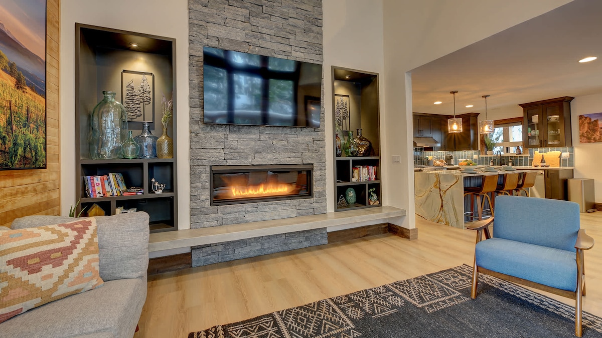 Barlow Pines Lodge: si trova a 2,600 m ², una spaziosa e moderna baita in legno, che può ospitare più di 9 persone. Dispone di 4 camere da letto, 1 letto singolo in soppalco e 3,5 bagni con vista sul Monte Hood, 2 caminetti a gas in un tranquillo quartiere di fascia alta senza eventi per un'esperienza rilassante nel Government Camp. Dai un'occhiata al nostro profilo Instagram: BarlowPinesLodge. **GLI ANIMALI DOMESTICI DEVONO essere COMUNICATI E PRE-APPROVATI È previsto un supplemento di 85$ per soggiorno. Il 100% delle spese di pulizia va ai nostri addetti alle pulizie. Permesso della contea n. STR-898-24