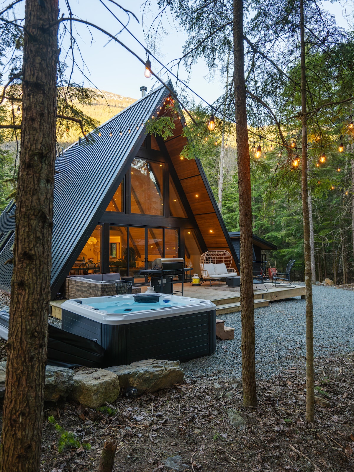 Rilassati e ricaricati in questo chalet tranquillo ed elegante. Che tu sia alla ricerca di tranquillità o di avventure all'aria aperta, questa posizione perfetta offre entrambe le cose. Prepara un banchetto nella cucina ben attrezzata o gusta un bicchiere di vino sulla splendida terrazza coperta accanto al focolare o nella vasca idromassaggio. Nelle giornate di pioggia, divertiti con i tanti giochi disponibili. Gli appassionati di attività all'aperto possono esplorare i numerosi sentieri escursionistici di Sunshine Valley e Manning Park. I cani ben educati sono i benvenuti, previo pagamento di un supplemento.