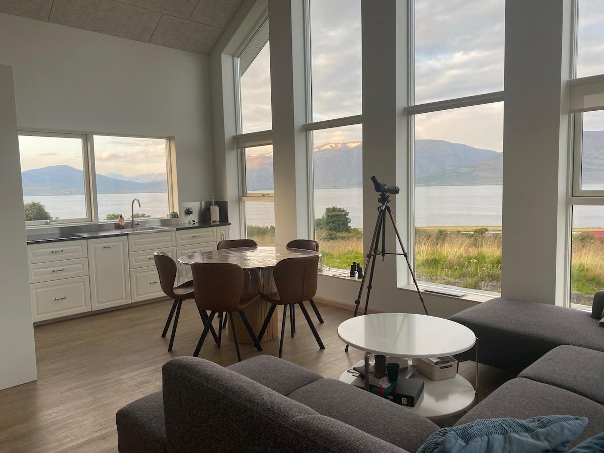 Un cottage di lusso e in stile moderno vicino alla stazione sciistica/di mountain bike Hlíðarfjall, che offre agli ospiti un rifugio confortevole dopo una giornata di sci o altre attività. Un'ampia area comune e 3 camere da letto con un totale di 6 letti di qualità. Ci sono 2 bagni e una vasca idromassaggio. Cucina completamente attrezzata, TV (Netflix) e wifi con connessione in fibra. Include un barbecue e posti a sedere all'aperto, dove potrai goderti la bellezza dell'area circostante con vista sulle montagne che circondano Eyjafjörður.