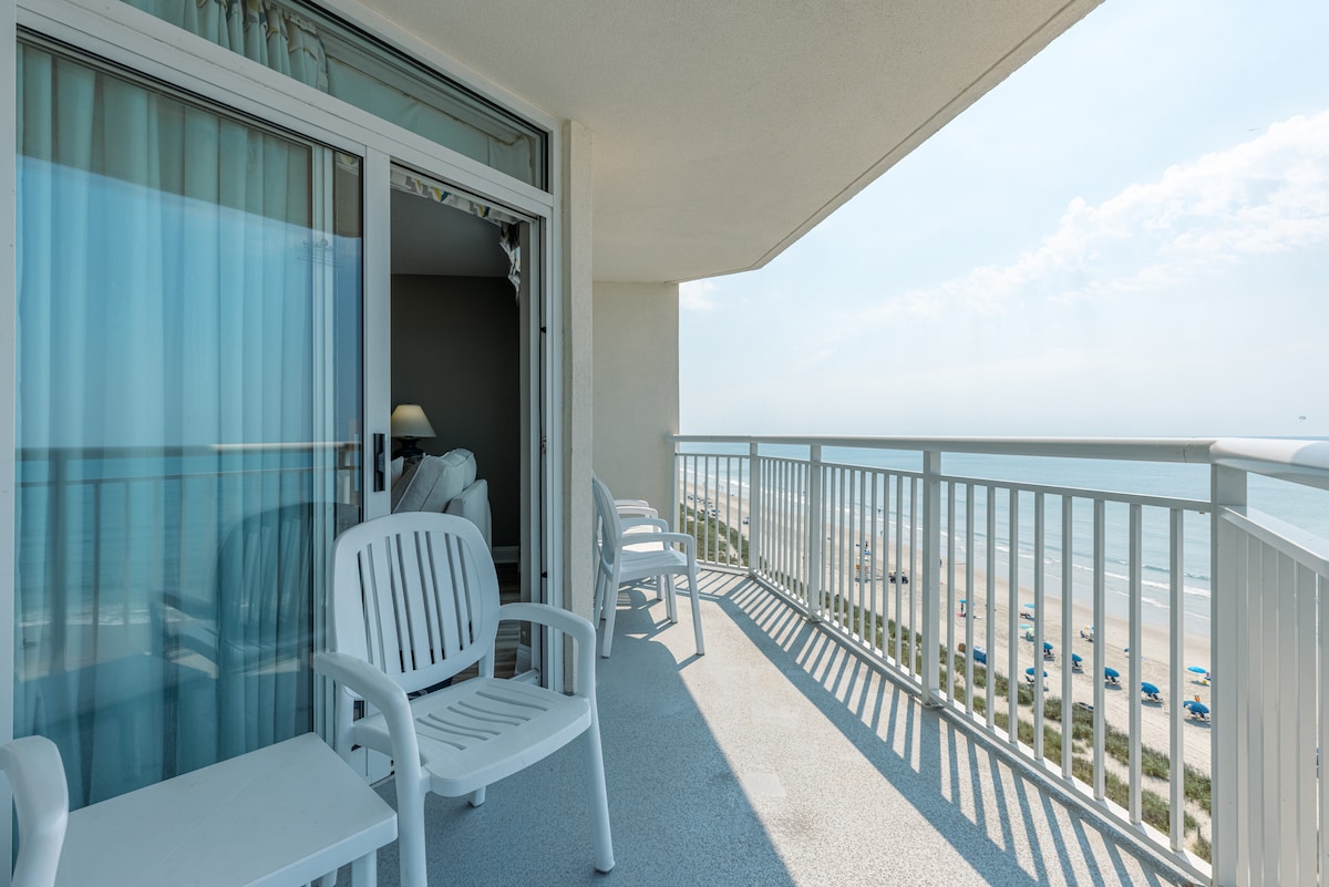 Myrtle Beach, SC-No detail is overlooked at this charming place to stay. Very nice beach view, beach access, quiet area - Get to beach within a few minutes and/or enjoy the pool lounging or hot tub in evening! Downstairs bar at night, breakfast in morning & turtle bay for lunch ! Starbucks located inside resort as well! What else do you need? Welcome packet , kids games, first aid, 2 beach chairs available, pool noodles too! Fresh laundered Sheets, comforter & bath towels provided!