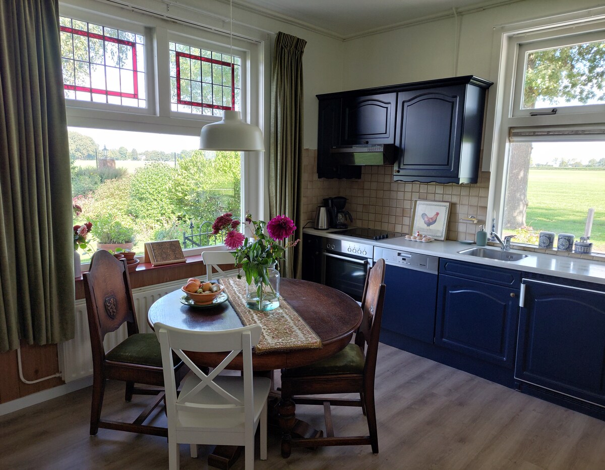 De Mast bij fort Vechten, fattoria, situata nella fertile regione vicino al Kromme Rijn, vicino a Utrecht per 1 -7 persone Il massimo godimento di tutto ciò che la vita agricola ha da offrire. Dalla fattoria si ha una vista libera sui campi in tutte le direzioni. Accanto al sentiero si trovano grandi querce, con una grande terrazza con divano lounge a disposizione esclusiva degli ospiti. Puoi goderti la pace, ma anche: camminare, andare in bicicletta, fare canoa lungo il Kromme Rijn o passeggiare lungo i canali di Utrecht.