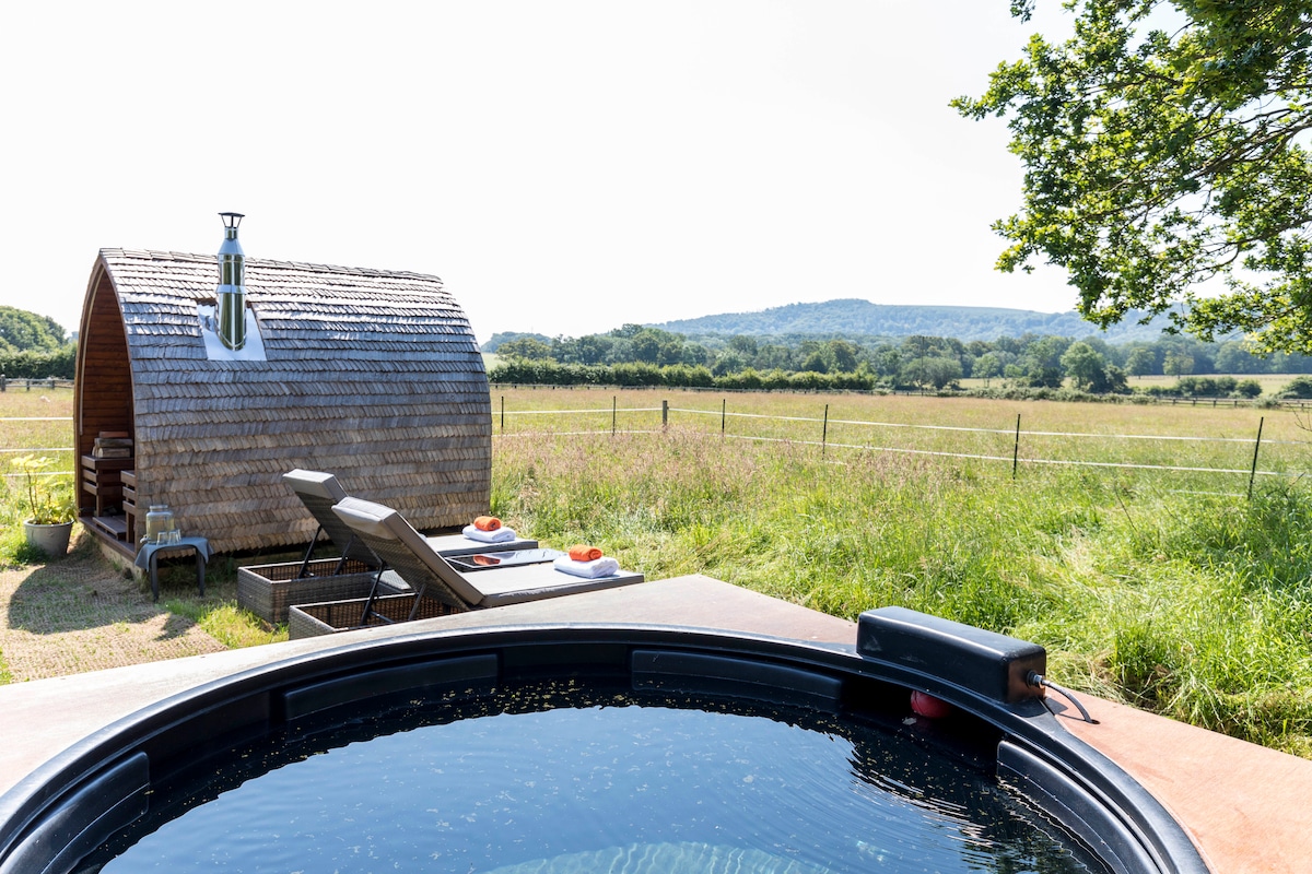 Capanna nella foresta e sauna a infrarossi vicino a Goodwood e Cowdray
