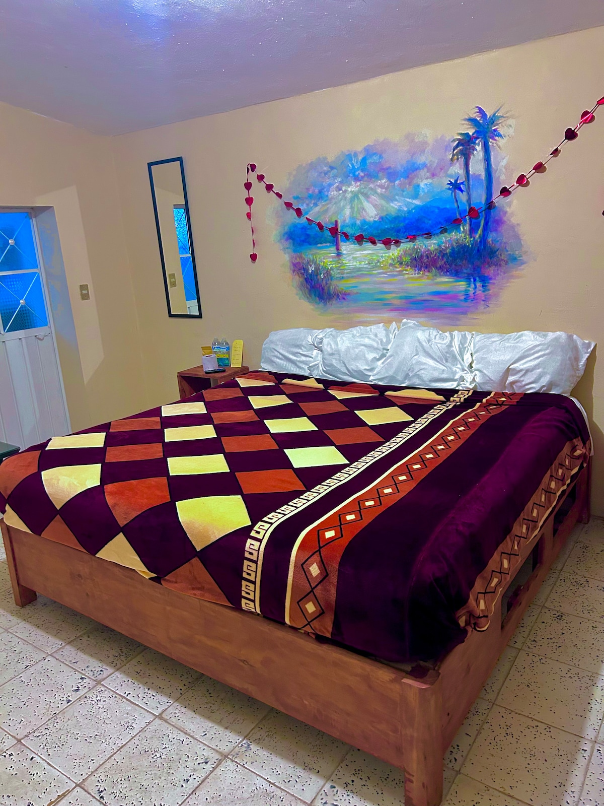 Experience the comfort of Colibrí Room, a cozy space surrounded by nature in San Miguel Regla. Perfect for couples or small groups, it offers a double bed, sofa bed, Smart TV, WiFi, private bathroom, and free access to Bosque de las Truchas. Enjoy the firepit, BBQ grill, discounts on local experiences, and warm attention from our team. The ideal place to relax and reconnect.