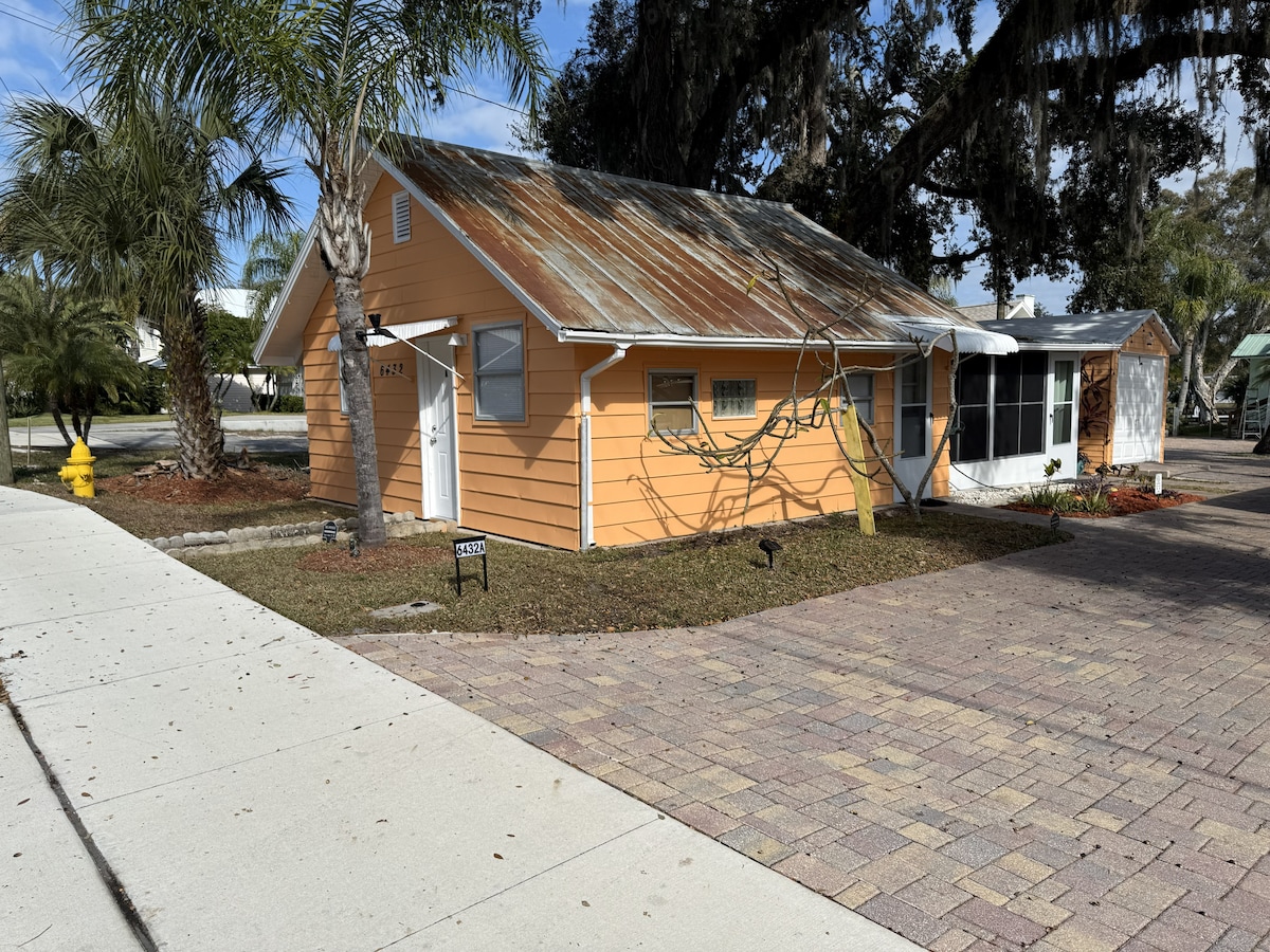 1,5 miglia dal Weeki Wachee State Park. Incantevole, tranquillo, cottage pittoresco, tema spiaggia, quartiere tranquillo. 2 camere da letto, 1 bagno. Utenze, TV a schermo piatto, via cavo, Netflix, internet wireless, lettore DVD, DVD, asciugamani e biancheria da letto. Cucina completamente attrezzata con pentole, padelle, utensili, piatti, bicchieri, tazze da caffè, bicchieri da vino, macchina per il caffè, friggitrice ad aria, tostapane e frullatore. Area salotto all'aperto con griglia a carbone e braciere. Porta una barca o un kayak. Parcheggia la tua barca nella proprietà.