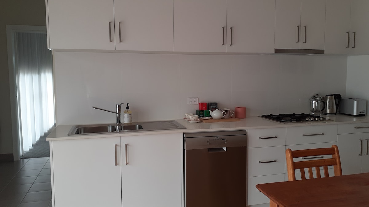 Una moderna pensione con 2 camere da letto completamente indipendente che ospita 4 persone in un ambiente adatto alle famiglie. Si trova in una posizione tranquilla e offre la vacanza perfetta a Canberra. Parcheggio custodito gratuito per un veicolo, con possibilità di parcheggio gratuito aggiuntivo in strada. Presa di corrente per la ricarica di veicoli elettrici disponibile nel parcheggio assegnato a un costo aggiuntivo su richiesta. - A 15 minuti dall'aeroporto - A 20 minuti dal CBD - A 30 minuti dalla foresta di Corin - A 2 ore dai campi innevati del Nuovo Galles del Sud e dalla costa meridionale