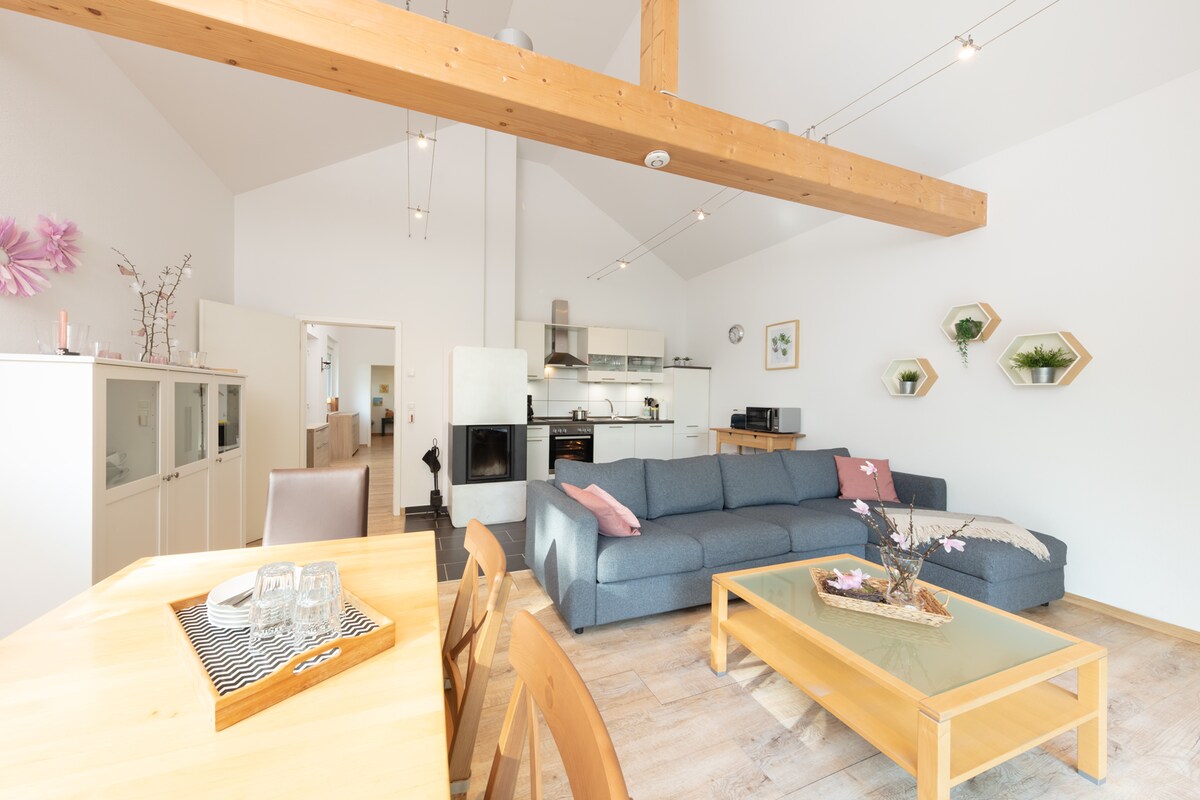 L'appartamento di 120 mq è una metà di una casa colonica del 1898 ed è stato ristrutturato. Circondata da campi, la casa si trova in una posizione isolata ed è perfetta per godersi la natura e la tranquillità. L'appartamento dispone di un giardino con terrazza e anche un barbecue è disponibile su richiesta. Dalla terrazza a sud si può vedere oltre i campi fino alle vicine montagne Wiehngebirge.