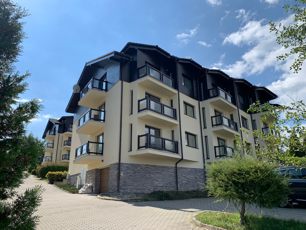 Questa nuova struttura offre l'accesso a un giardino privato e a una terrazza, a un parcheggio privato gratuito e a una connessione wifi gratuita. L'appartamento dispone di 2 camere da letto con bagno e servizi igienici privati, un soggiorno, una cucina e un bagno separato. Gli appartamenti 400 si trovano a Veľká Lomnica, a 13 km dagli Alti Tatra e a 8 km da Poprad. Proprio accanto agli appartamenti ci sono una panetteria, una pizzeria e un supermercato. L'aeroporto di Poprad-Tatry dista 12 km dall'alloggio. Il campo da golf Veľká Lomnica dista 3 km.