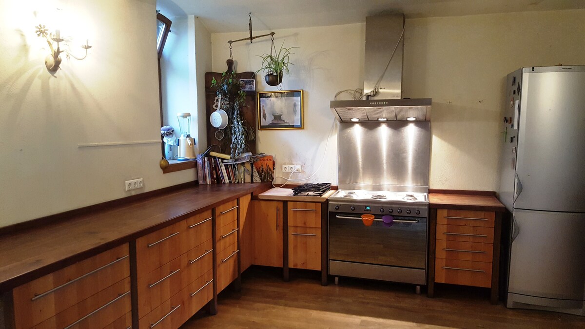 Abbiamo ampliato l'ex granaio sotto il tetto del vecchio Zollburg: 3 camere matrimoniali, 2 bagni e 1 cucina abitabile, ideale per un soggiorno confortevole in un ambiente storico. A vostra disposizione anche l'angolo fiorito nel cortile con tavolo e panche. Città, parco e pontile si trovano a pochi passi. Reno, Lahn e Mosella con castelli e luoghi storici offrono innumerevoli possibilità di escursioni. Venite a trovarci al castello di Martinsburg a Lahnstein!