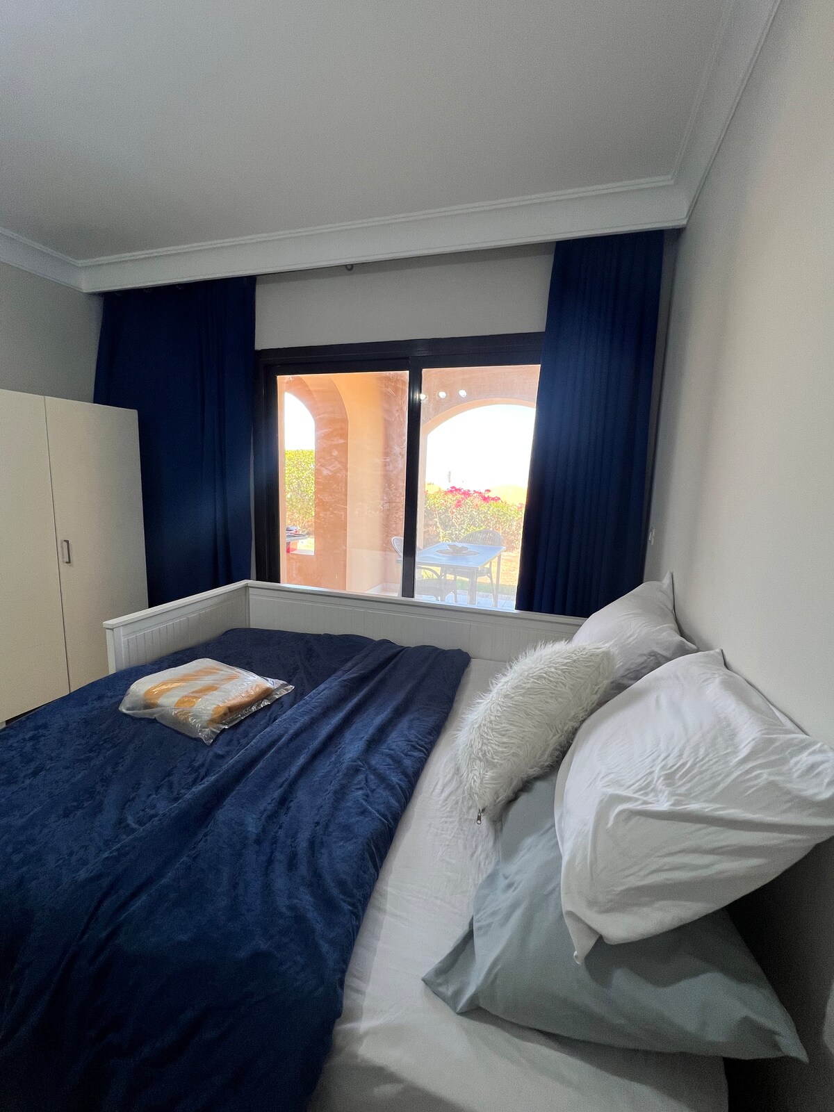 The space :- Luxury studio consisting of large bed and comfortable sofa kitchenette equipped with cooking utensils , bathroom provided with towels ,toilet paper and 🛀 bathtub . You can enjoy a private garden 🪴. Enjoy private beach 🏖️ and many pools in the resort Free wi fi available 🛜 The compound is located in downtown, close to all restaurants, supermarkets, and shops. It’s a fully secured compound with 24-hour security. The apartment itself is in a very quiet and peaceful spot.