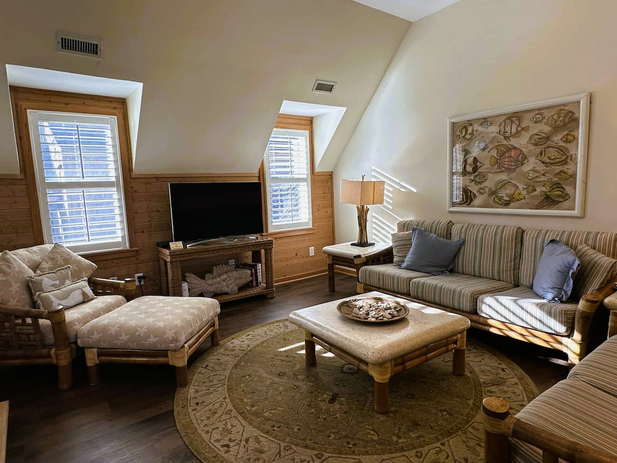 Splendido appartamento con due camere da letto proprio sul porto di Silver Lake! Goditi una vista sul porto da ogni stanza, una spaziosa zona giorno all'aperto all'ultimo piano con soffitto a cattedrale e una veranda arredata in modo confortevole. Ammira i traghetti che vanno e vengono e goditi i tramonti più spettacolari dal comfort della tua "casa lontano da casa"! Goditi una splendida vista sul porto da ogni stanza di questo appartamento!!! Scopri la vacanza definitiva sul porto a Harborview, Down Creek Condo Unit D101, situata