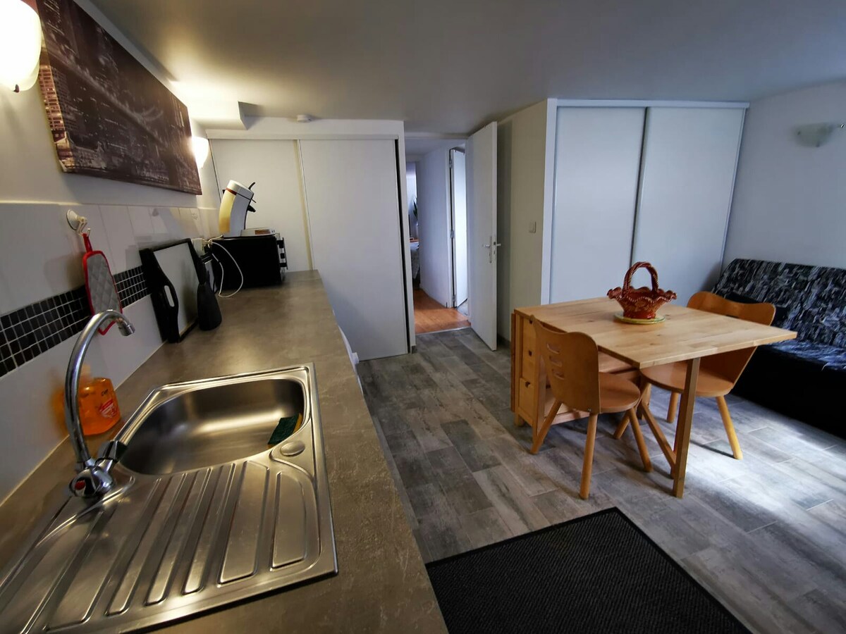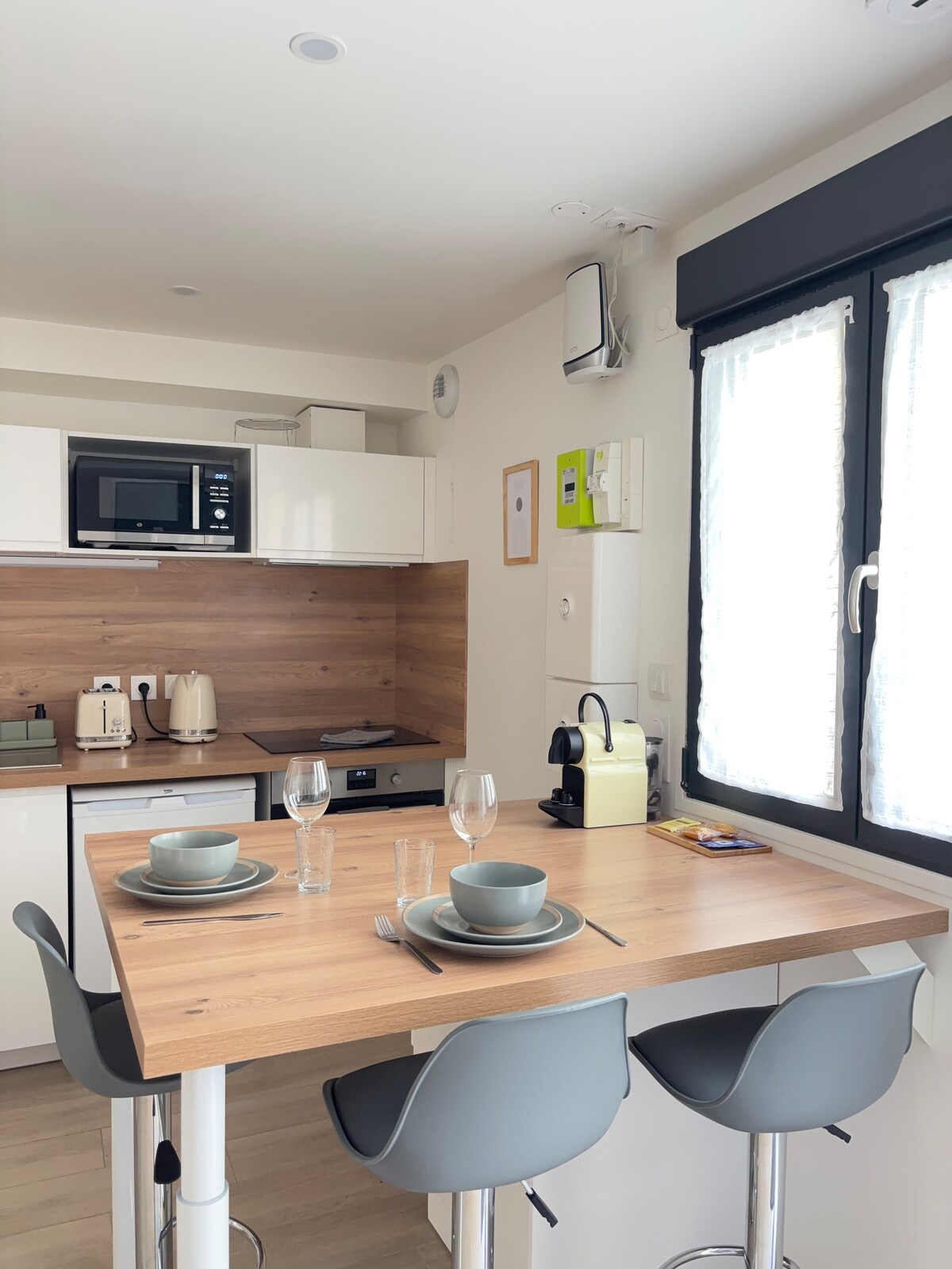 Splendido appartamento di 60mq con jacuzzi su terrazza di 20mq e una cabina hammam e sauna. Appartamento situato al 2° piano di una casa, arredato con gusto, ampia vetrata che si affaccia su una terrazza di 20 m2 con vasca idromassaggio, lettini prendisole e poltrona sospesa, cucina attrezzata, una camera con letto matrimoniale e un ampio divano letto panoramico per 2 persone, bagno con cabina doccia hammam/sauna. Ideale per un momento romantico e una fuga a Parigi. *FESTE o SERATE PROIBITE