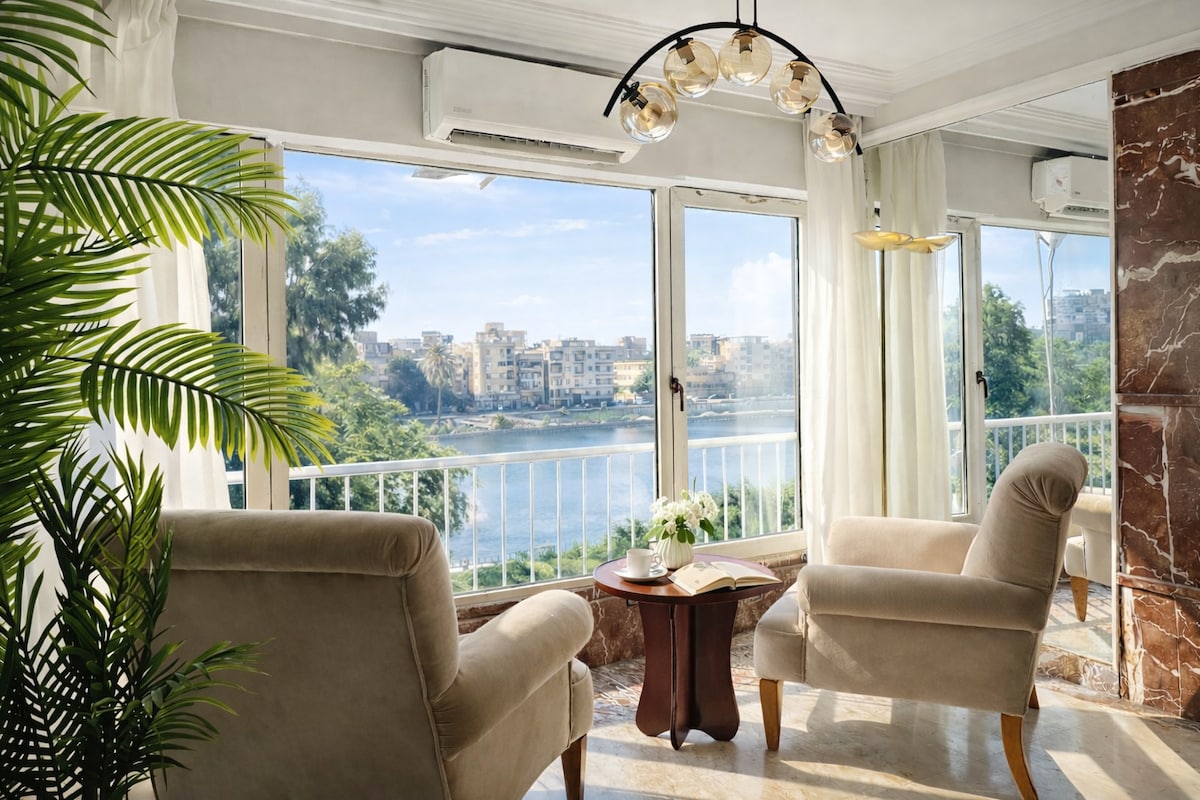 Modern newly renovated nile view luxury home , peaceful and secured is welcoming you on the beautiful island of Zamalek Discover some of Cairo’s most iconic landmarks all within easy reach of the apartment: •🕌 The Grand Egyptian Museum & The Pyramids of Giza • Distance: 17 km • Travel time: Approximately 20 minutes by car via the Ring Road •🏺 The National Museum of Egyptian Civilization (NMEC) • Distance: 8.1 km • Travel time: Around 20 minutes by car