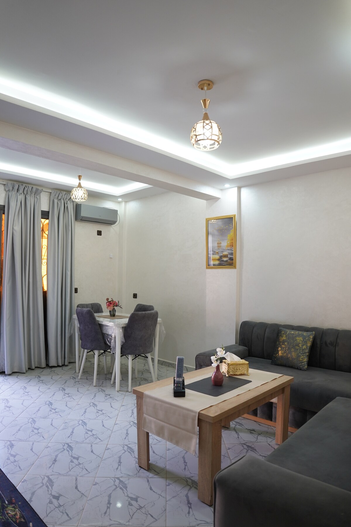 Un magnifico appartamento situato a Imi Ouadar, che unisce comfort ed eleganza in un design armonioso. Offre uno spazio abitativo spazioso e ben organizzato, dove ogni dettaglio è pensato per portare relax e serenità. La cucina è completamente attrezzata per rispondere a tutte le vostre esigenze. E il meglio di tutto questo, la spiaggia è a soli due minuti a piedi, un luogo perfetto per godersi la vita costiera.