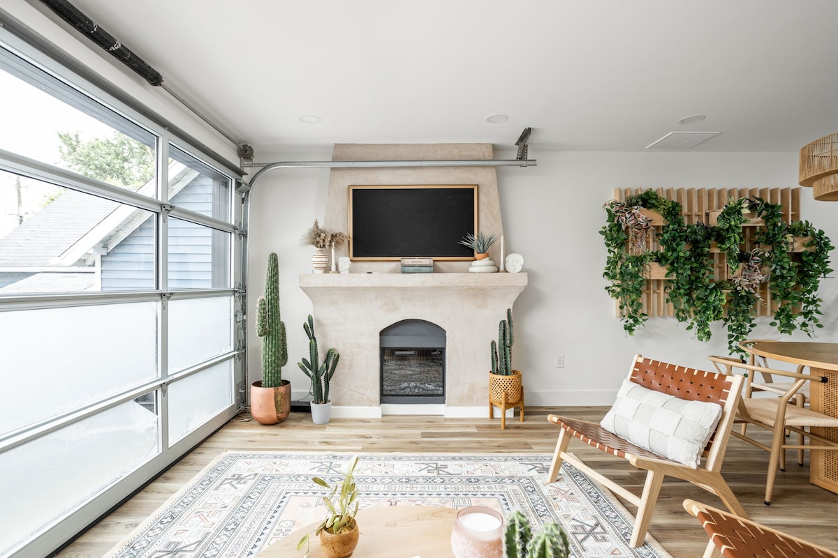 Entra nel tuo rifugio privato nel cuore di Fountain Square. Questa rimessa per carrozze di nuova costruzione, in stile moderno di metà secolo, offre comfort, stile e totale privacy. Goditi la connessione Wi-Fi veloce, il self check-in e il parcheggio privato gratuito, a poco più di 1,6 km dal Lucas Oil Stadium e dal Gainbridge Fieldhouse e a pochi passi da ristoranti, bar e musica dal vivo. Perfetto per coppie, viaggiatori solitari o lavoratori a distanza che cercano un soggiorno elegante e percorribile a piedi in uno dei quartieri più vivaci di Indy.