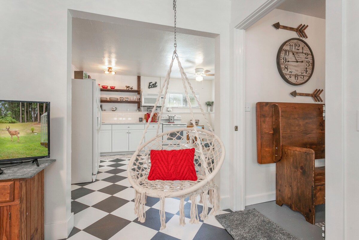 ANNUNCIO CONFORTEVOLE! Nostalgia di un tempo con sistemazioni moderne. Appositamente progettato per il tuo svago e divertimento. Posto letto comodo e cucina completa. Letto matrimoniale e abbondante biancheria da letto e da bagno. I bambini staranno abbastanza comodi, dormendo in un divano letto a tre quarti, in una culla e/o in una poltrona reclinabile, e si sentiranno al sicuro vicino alla famiglia. (Tuttavia, se siete alla ricerca di una fuga romantica, mamma e papà, questa volta lasciateli con amici o parenti!)