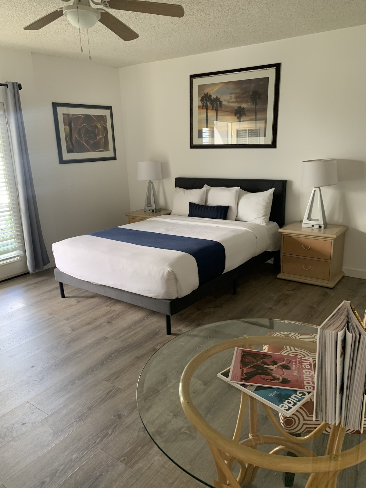 Ricca di fascino antico, rilassati e sgranchisci le gambe in questa spaziosa suite Murphy quee.n con 1 camera da letto e 2 bagni, con oltre 250 piedi quadrati di spazio, camera da letto con bagno annesso e letto matrimoniale. La suite è dotata anche di angolo cottura con forno e piano cottura, frigorifero completo, forno a microonde, tostapane e caffettiera. Scale senza ascensore. Ideale per gruppi che partecipano a Coachella, Stagecoach, Dinah o White Party