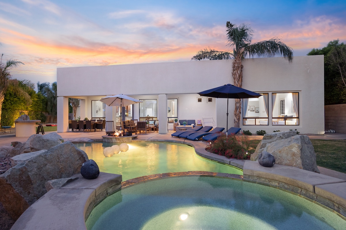 Embark on a serene escape at "Casa Tranquila". ☀︎ Your comfort is our commitment—experience an unparalleled getaway! → Spectacular Pool & Spa Oasis: Saltwater pool, heated spa, with panoramic golf course and mountain views. → Poolside Paradise & Entertainment Hub:Sunset magic and BBQ feasts by the large fire pit, with shuffleboard and foosball challenges with friends. → New Speakeasy for poker, bumper pool, ping pong, darts, and live sports on TV Your Unforgettable Stay Awaits—BOOK NOW!