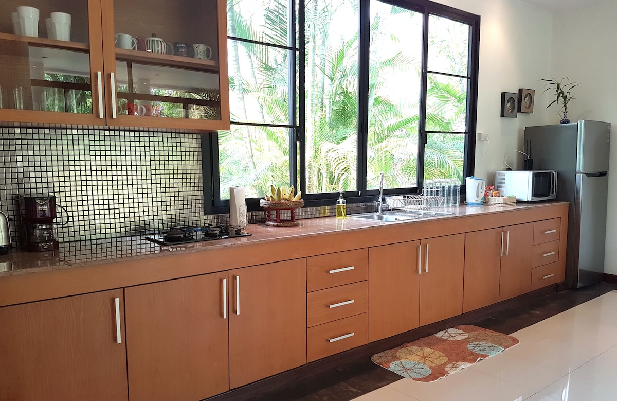 Un rifugio perfetto. Nel cuore tropicale del sud di Samui, la villa "Baan Putahracsa" è una moderna villa con tre camere da letto e una piscina con acqua salata. A pochi minuti da 3 spiagge. Tutte le utenze sono incluse. Su richiesta, è possibile usufruire di colazione, pranzo e cena tutti i giorni. Fai un tuffo o semplicemente rilassati a bordo piscina. Goditi bevande fresche mentre ti siedi all'ombra. Una villa dove puoi davvero staccare. Cucina moderna completamente attrezzata. Il villaggio sulla spiaggia di Thong Krut è a pochi passi di distanza, con molti caffè e ristoranti.