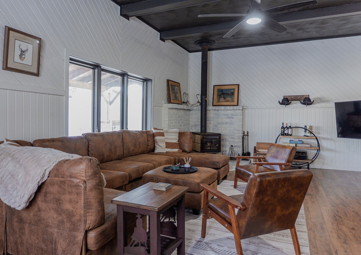 Tucked away in a serene woodland setting, this charming cabin is the perfect place to unplug and reconnect with nature. Thoughtfully styled with rustic charm and modern comforts, the cabin sits alongside a gently flowing river, offering a calming backdrop year-round. Enjoy a cozy open living space, a fully equipped kitchen, three full baths, and two restful bedrooms with soft linens. After a day outdoors, unwind in the on-site sauna and soak in the peaceful surroundings.